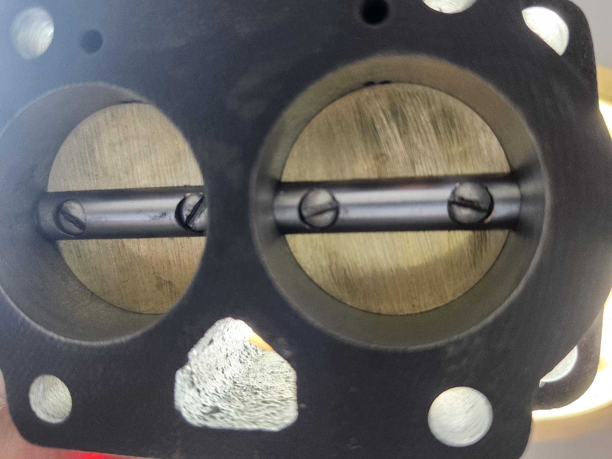 The original throttle plates are worn from rubbing on the bores.